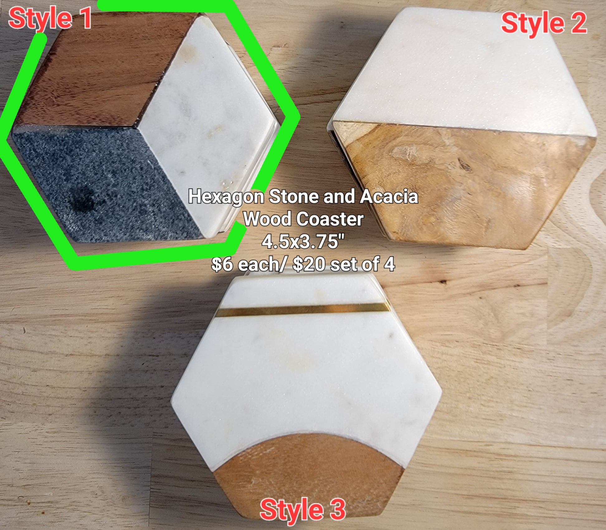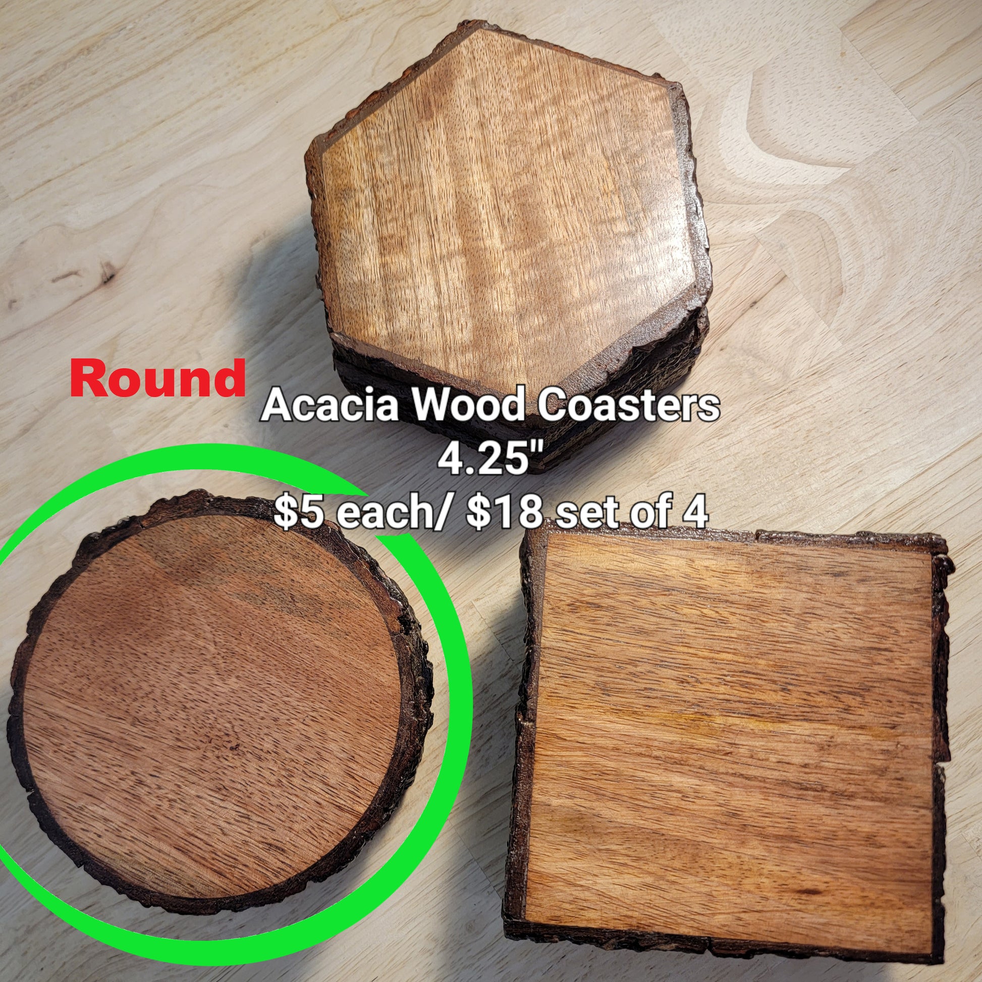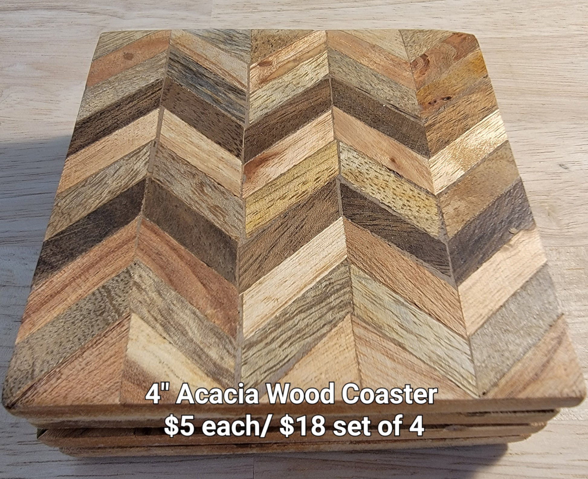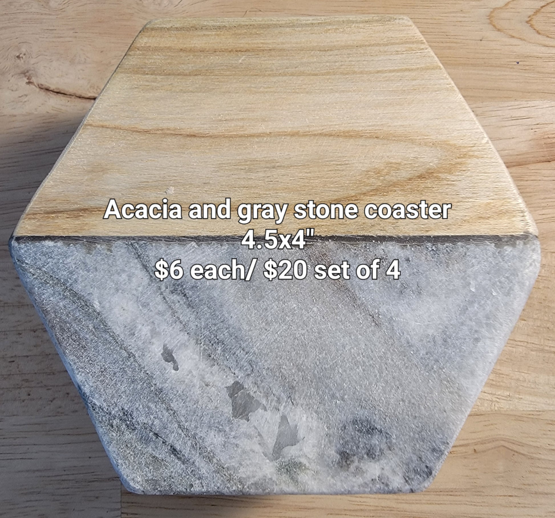 *Types of wood: Acacia, Bamboo, Rubberwood, Olive, Teak. Some boards/ coasters feature acacia/ marble combinations. Colors range from light to dark. Some boards can be stained with color, if desired.