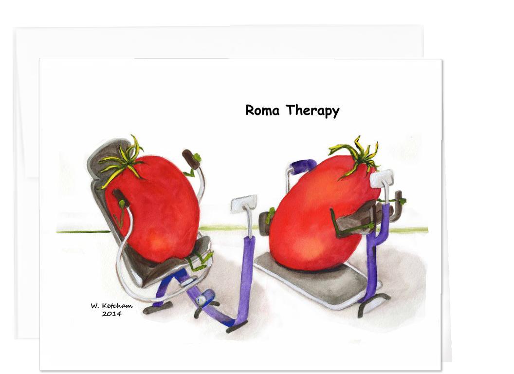 These veggies workout in the gym to stay in shape. Original four paintings are watercolors by Wanda Ketcham.