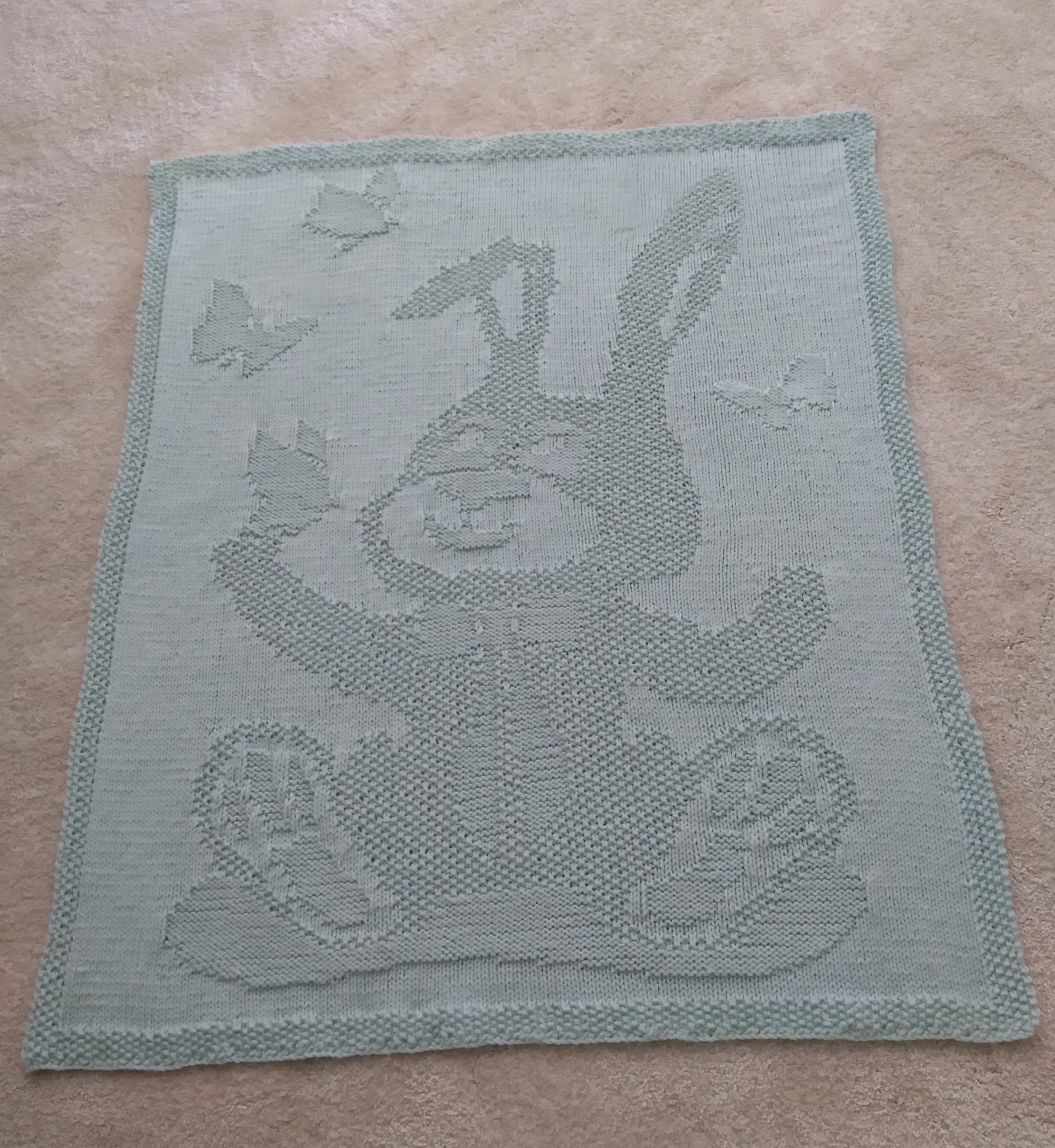 Bunny and Butterflies Baby Blanket Knitting Pattern