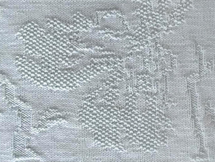 This knit pattern features a mermaid in the sea with a starfish, a sea horse, coral and fish. Three stitches used in this pattern; knit, purl, and seed stitch. The finished blanket has an embossed look and it is as adorable on the reverse side as on the front. It is fun to watch the image appear as you knit from bottom up.