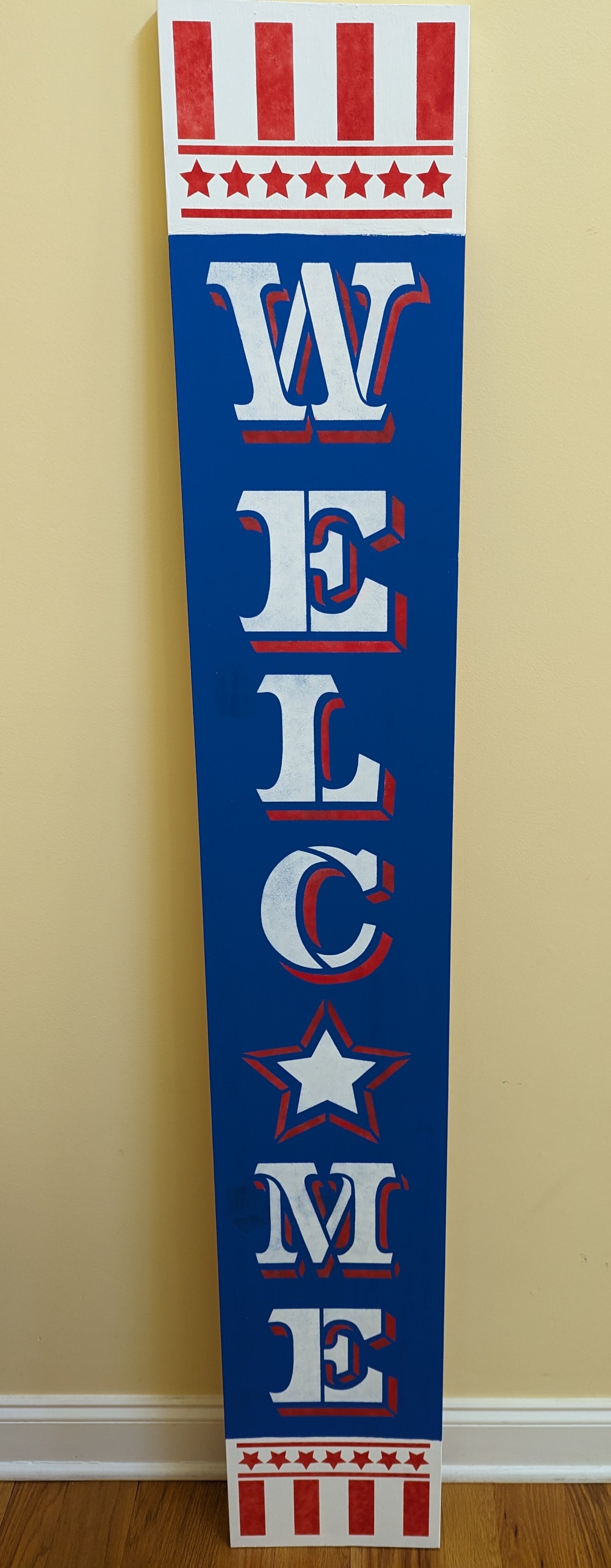 This sign stands 6 feet tall and is hand painted and sealed for the elements. Can be displayed all year round indoors or outdoors.