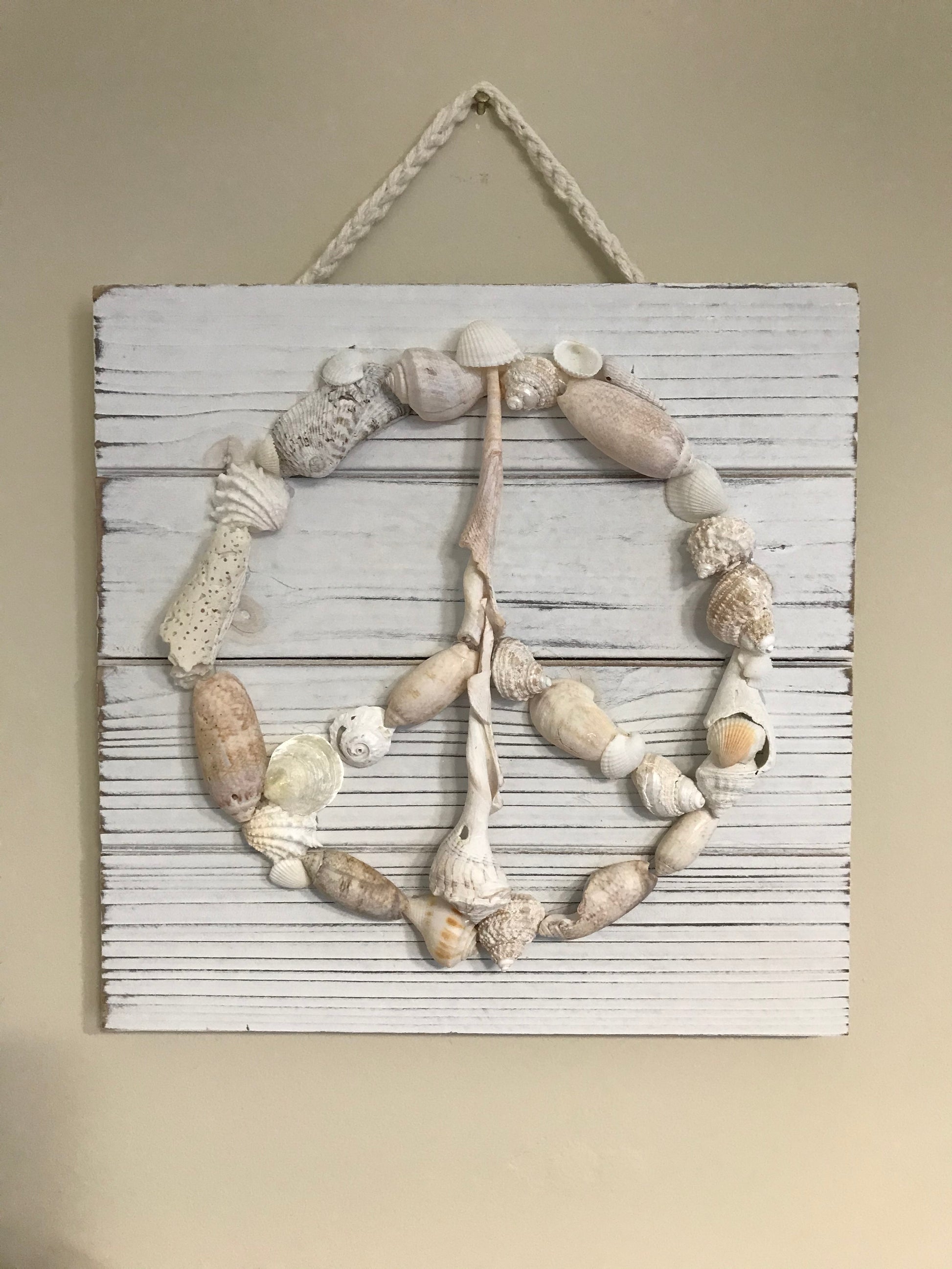 Subtle shades of white and ivory shells on a backing of white distressed wood create a beautiful wall accent that will compliment any decor. Recommended for indoor display.