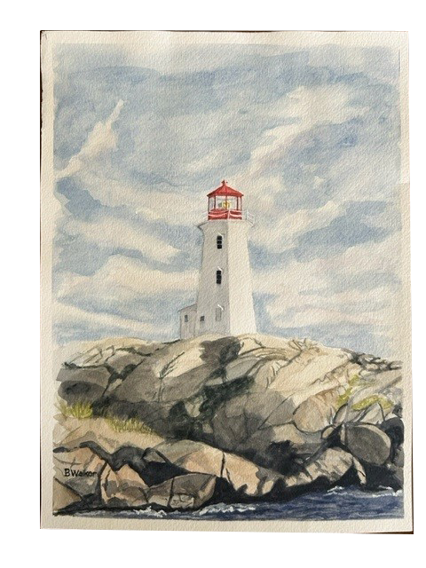 Peggy's Cove Lighthouse Watercolor (Framed)