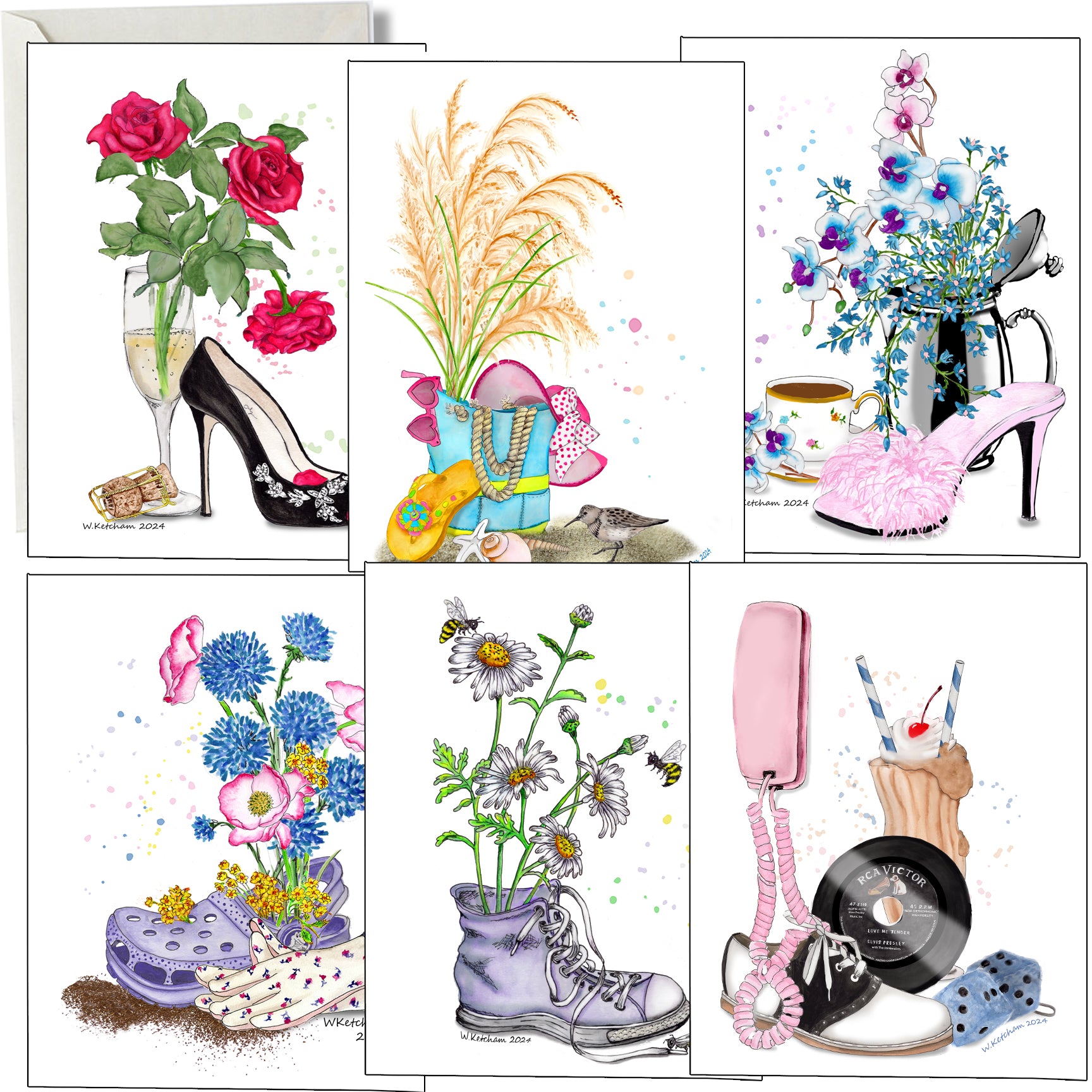 Set of 12 cards and 12 white envelopes. Select all of one print or an assortment.