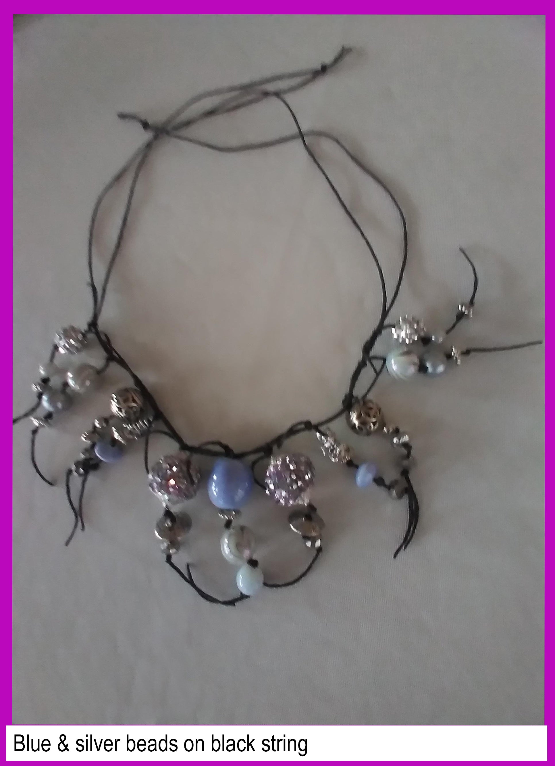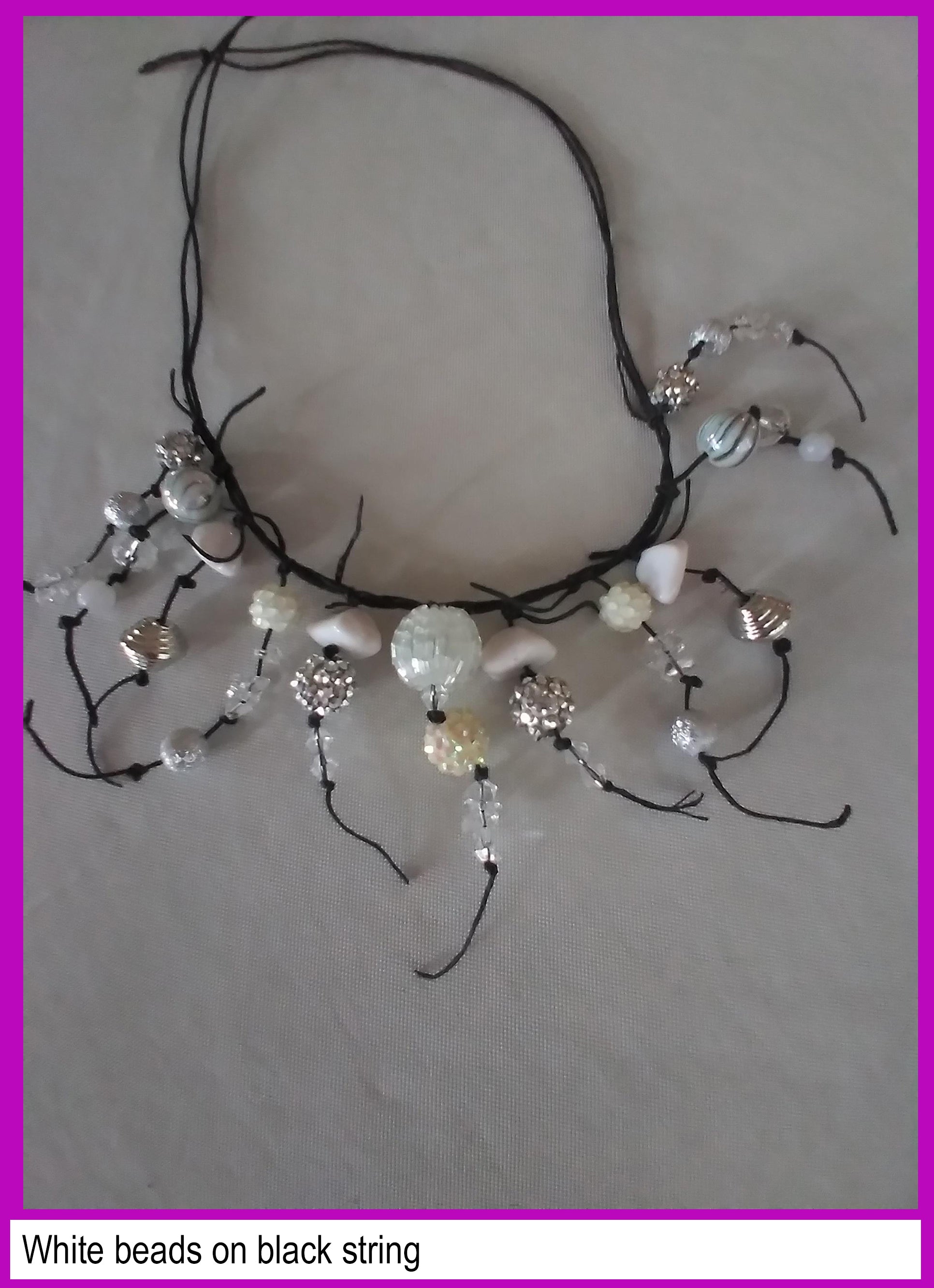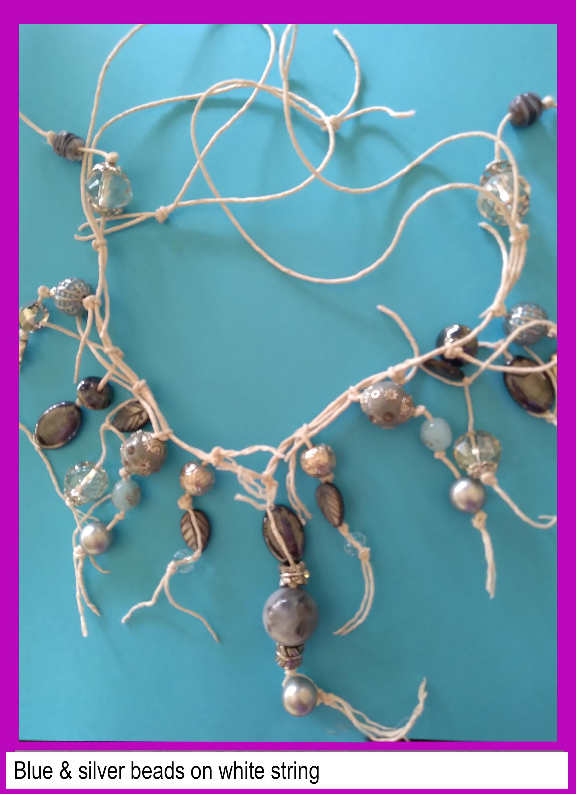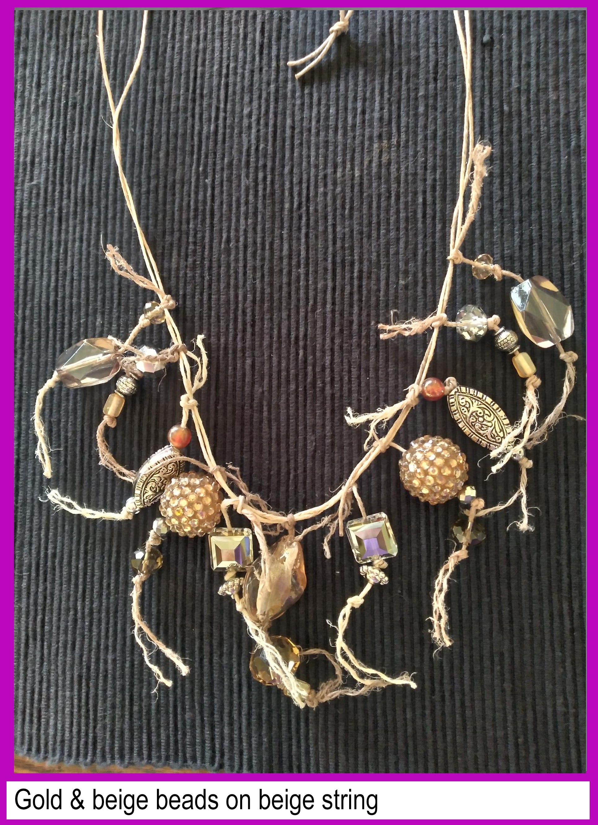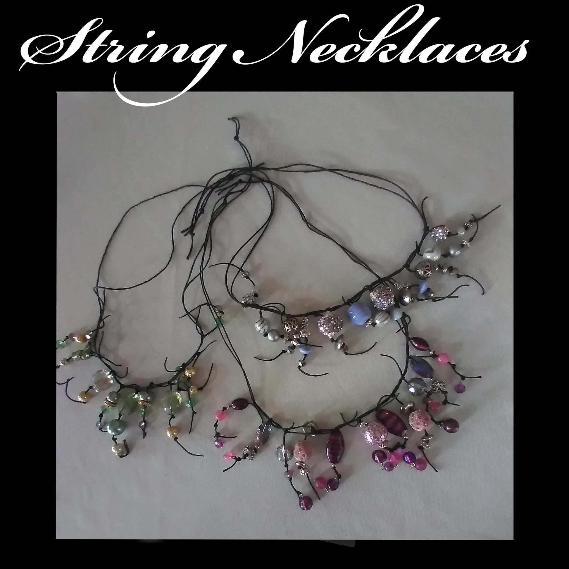 String necklaces can be tied in the back or the strings can be crossed behind your neck and looped over the top set of beads.