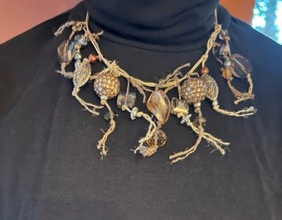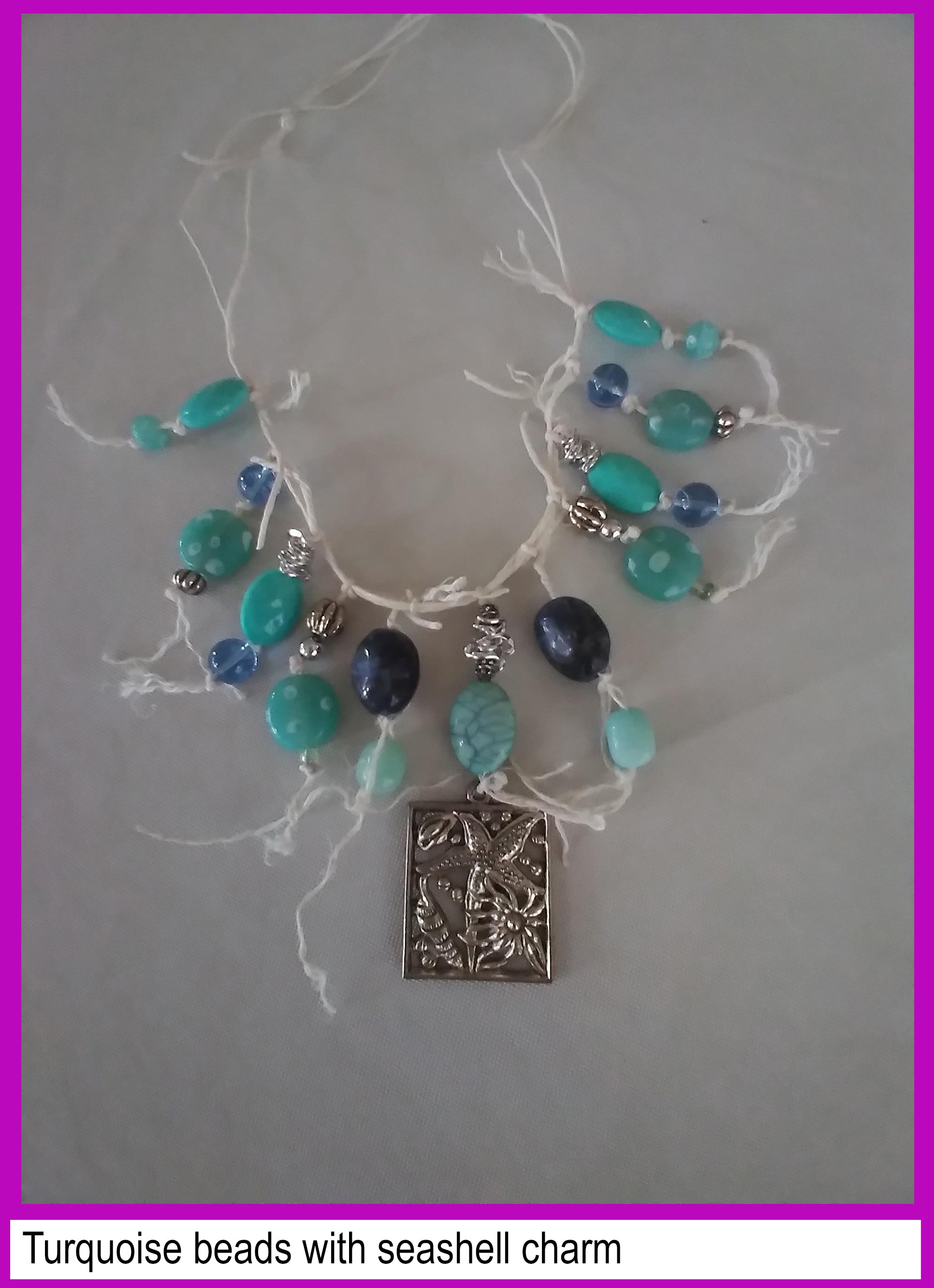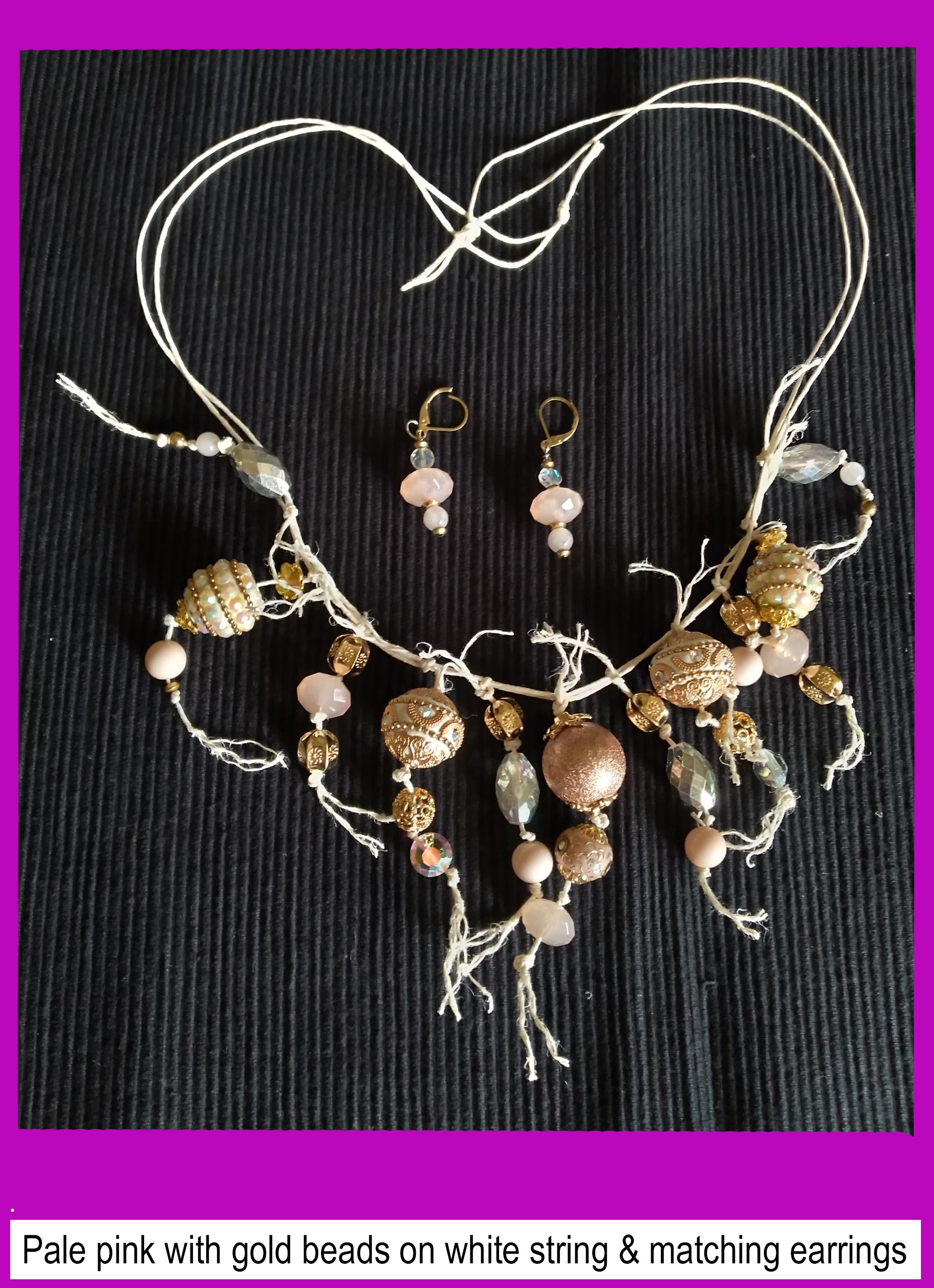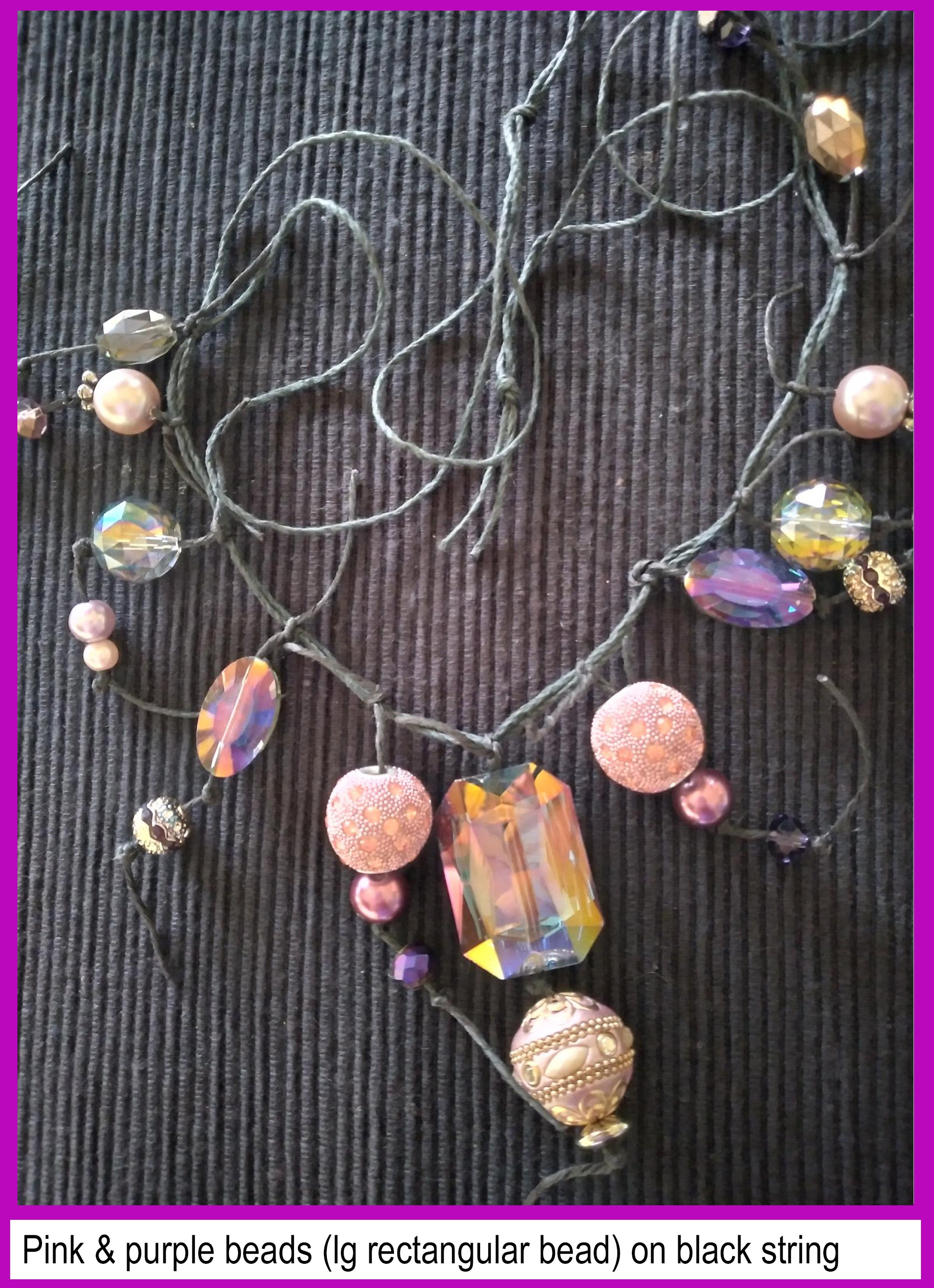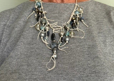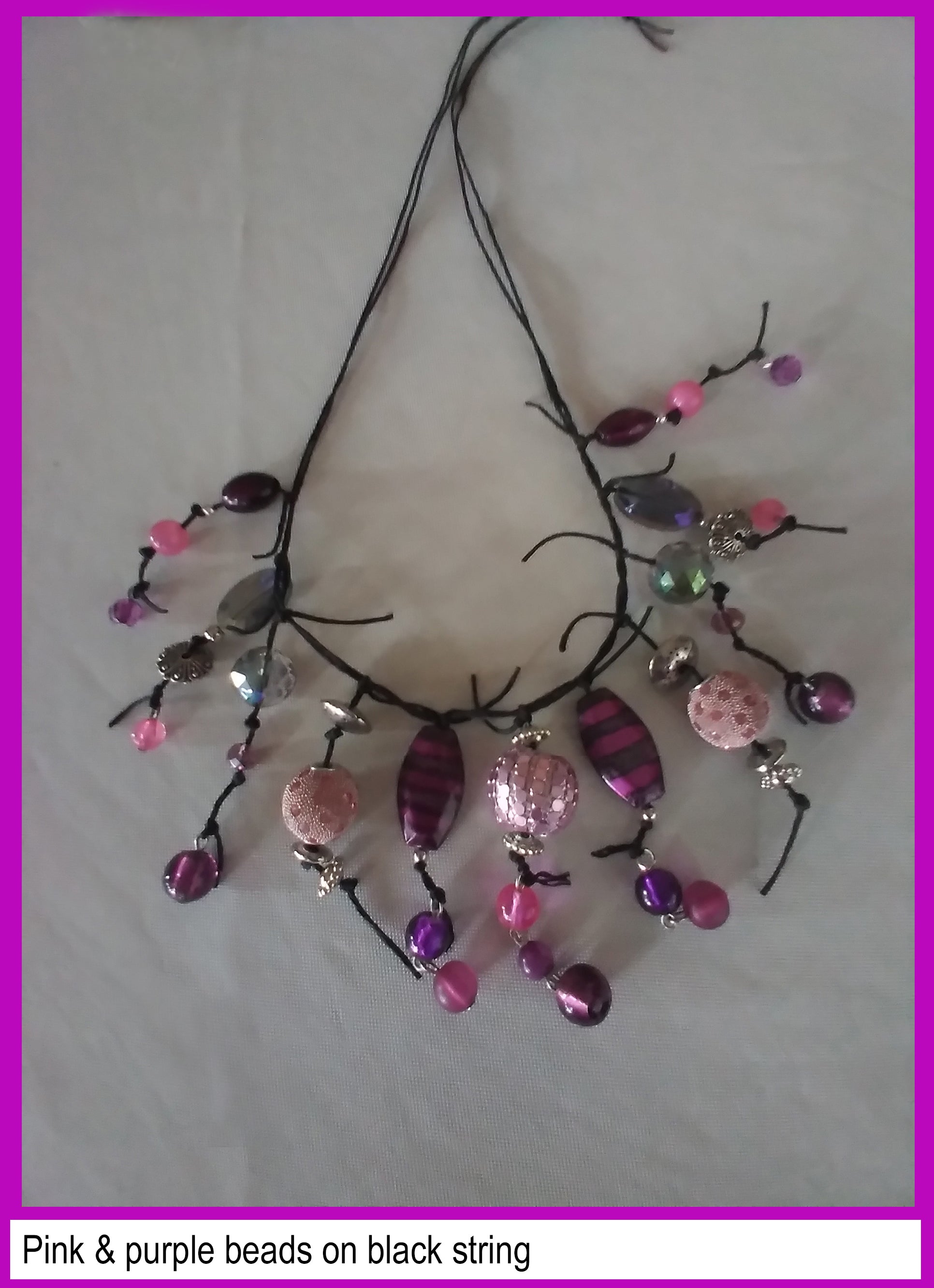 String necklaces can be tied in the back or the strings can be crossed behind your neck and looped over the top set of beads.