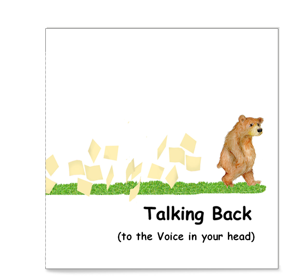 This book follows a bear who is weighed down with negative thoughts. Each thought is on a sticky note and follows him wherever he goes. The story explores where those thoughts originated (tv, family, friends, etc). When the bear can't take the weight and volume of thoughts any longer, he begins to analyze the thoughts that come into his head and change them to positive thoughts. Now the sticky notes that trail after him are filled with positive affirmations and his future gets brighter.