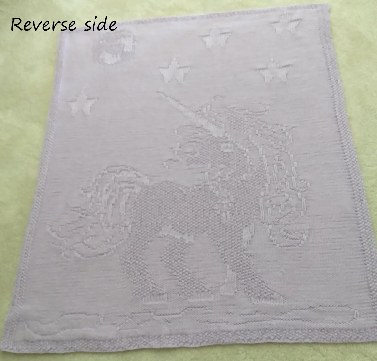 This knit pattern features a unicorn in the moonlight. Three stitches used in this pattern; knit, purl, and seed stitch. The finished blanket has an embossed look and it is as adorable on the reverse side as on the front. It is fun to watch the image appear as you knit from bottom up.